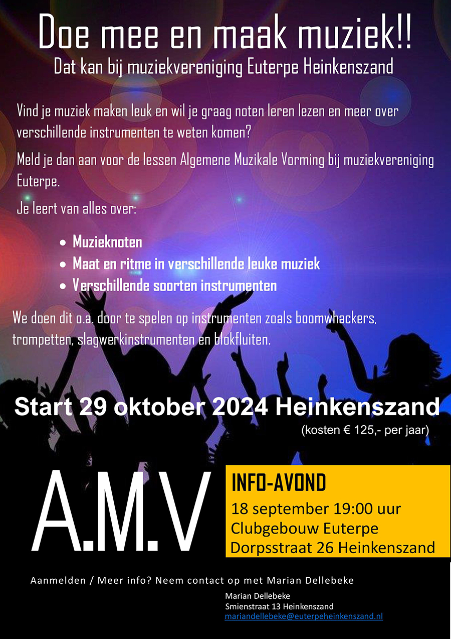 Informatie kunt u vragen bij Marian Dellebeke, mail: mariandellebeke@euterpeheinkenszand.nl of tel. 06-31249902.