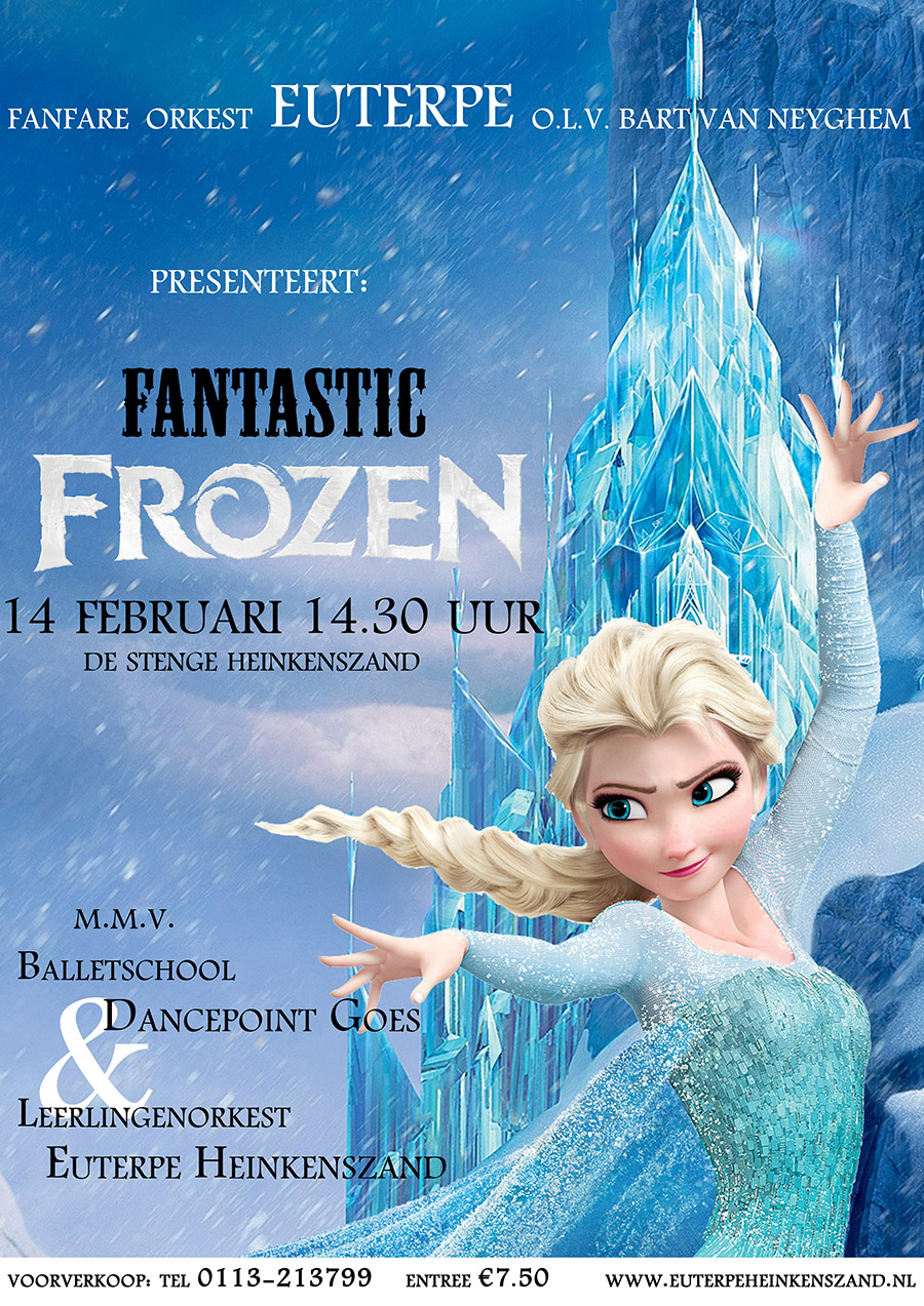 Heeft u al kaarten voor het "Fantastic Frozen"-concert. Bestel ze dan snel, want vol = vol en het wordt echt fantastisch!! Een afwisselend Frozen programma met ...muziek, dans, film en nog vele verrassende elementen. Kaarten ad. € 7,50 zijn te bestellen onder nummer 0113-213799 of via de mail: mariandellebeke@euterpeheinkenszand.nl