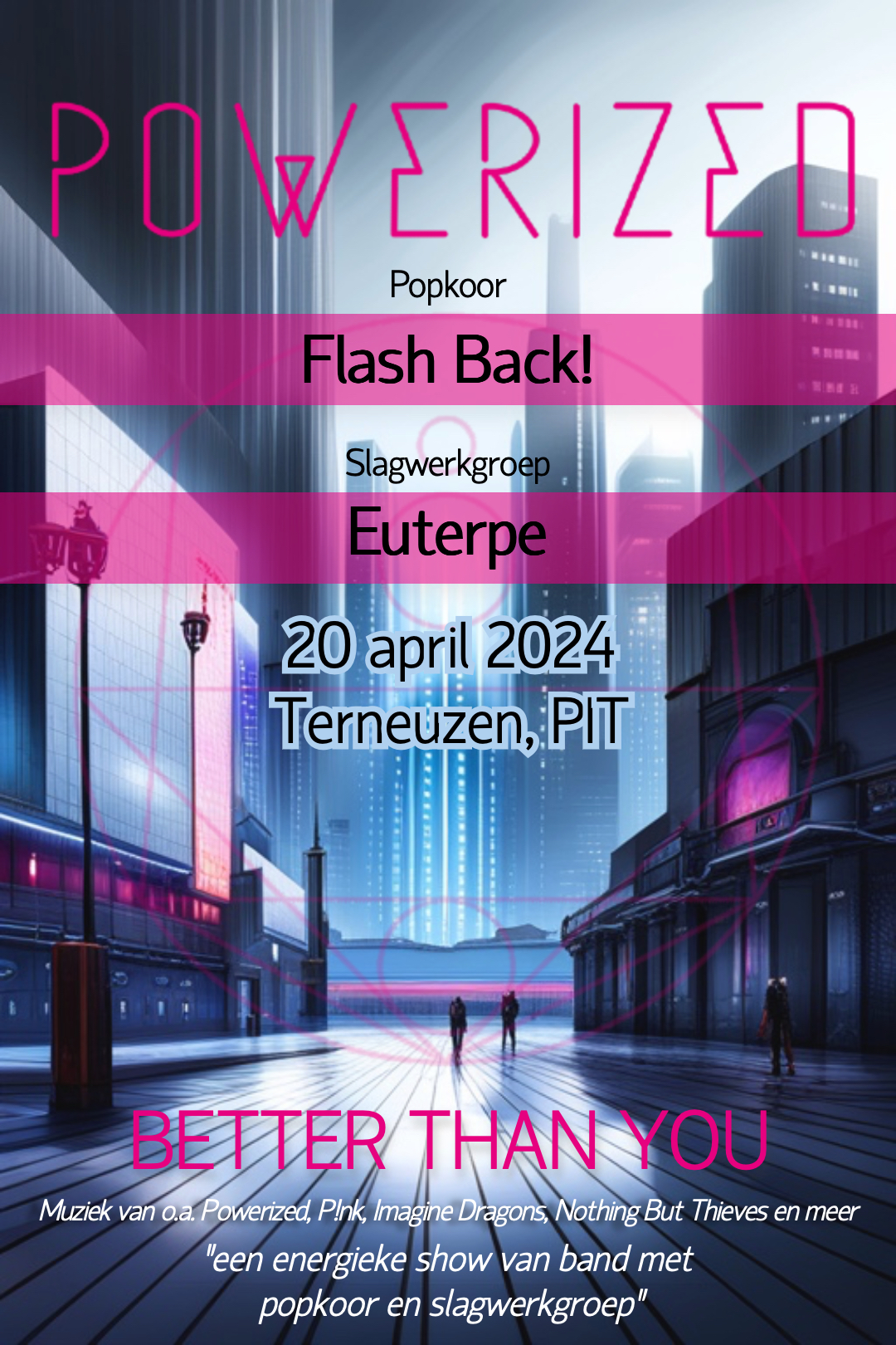 Op zaterdag 20 april treedt onze slagwerkgroep op in Terneuzen met popband Powerized!
