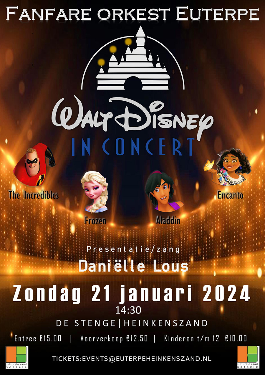 Zondagmiddag 21 januari 2024 neemt fanfareorkest Euterpe je mee in de magische wereld van Walt Disney.